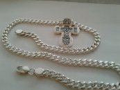 Серебряная цепь Бисмарк 200 грамм с крестом для мужчины