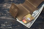 Данное портмоне застёгивается с помощью кобурных кнопок, может показаться, что достаточно ненадёжно, но это не так. Также обращаем Ваше внимание, что отделение для денег не закрыто с одной стороны. За счёт такой конструкции имеет большую вместительность в сравнении с конкурентами - кошельками в этой же нише. Отлично пойдёт в качестве подарка, как весьма уникальная и практичная вещь.
