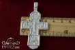 Зображено на хресті: Розп'яття Христове з майбутніми. Свята Трійця. Архангел Михаїл. Святі Воїни. Тихвинська ікона Божої Матері. Великий православний хрест із чорнінням та позолотою.Висота: 8 мм