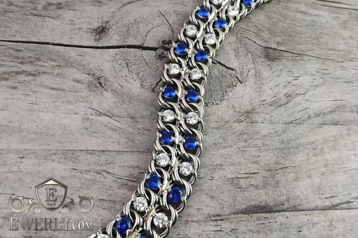 Плетіння "Подвійний Арабський Бісмарк" зі срібла з каменями